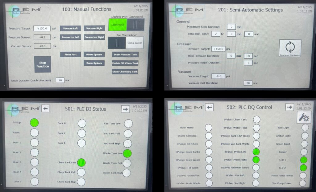 Conclusion: These case studies demonstrate the robustness, versatility, and non-destructive nature of REM’s selective chemical dissolution process across different alloys, geometries, and channel architectures. The ability to entirely remove trapped powder from both complex TPMS cores and densely packed multi-channel configurations highlights the method’s scalability and adaptability to real-world AM challenges. By combining chemically selective dissolution with a controlled pressure–vacuum delivery system, REM’s approach provides a repeatable, production-ready solution for ensuring complete internal cleanliness without compromising structural fidelity. This capability not only enables the realization of next-generation additively manufactured high-performance heat exchangers but also extends to a wide range of AM components with intricate internal flow paths, such as manifolds, combustors, and cooling channels. Ultimately, integrating REM’s automated declogging system (Figure 6) into the AM workflow represents a critical advancement toward manufacturing readiness, unlocking the full design freedom and performance potential of metal additive manufacturing for aerospace, defense, and high-performance energy systems.